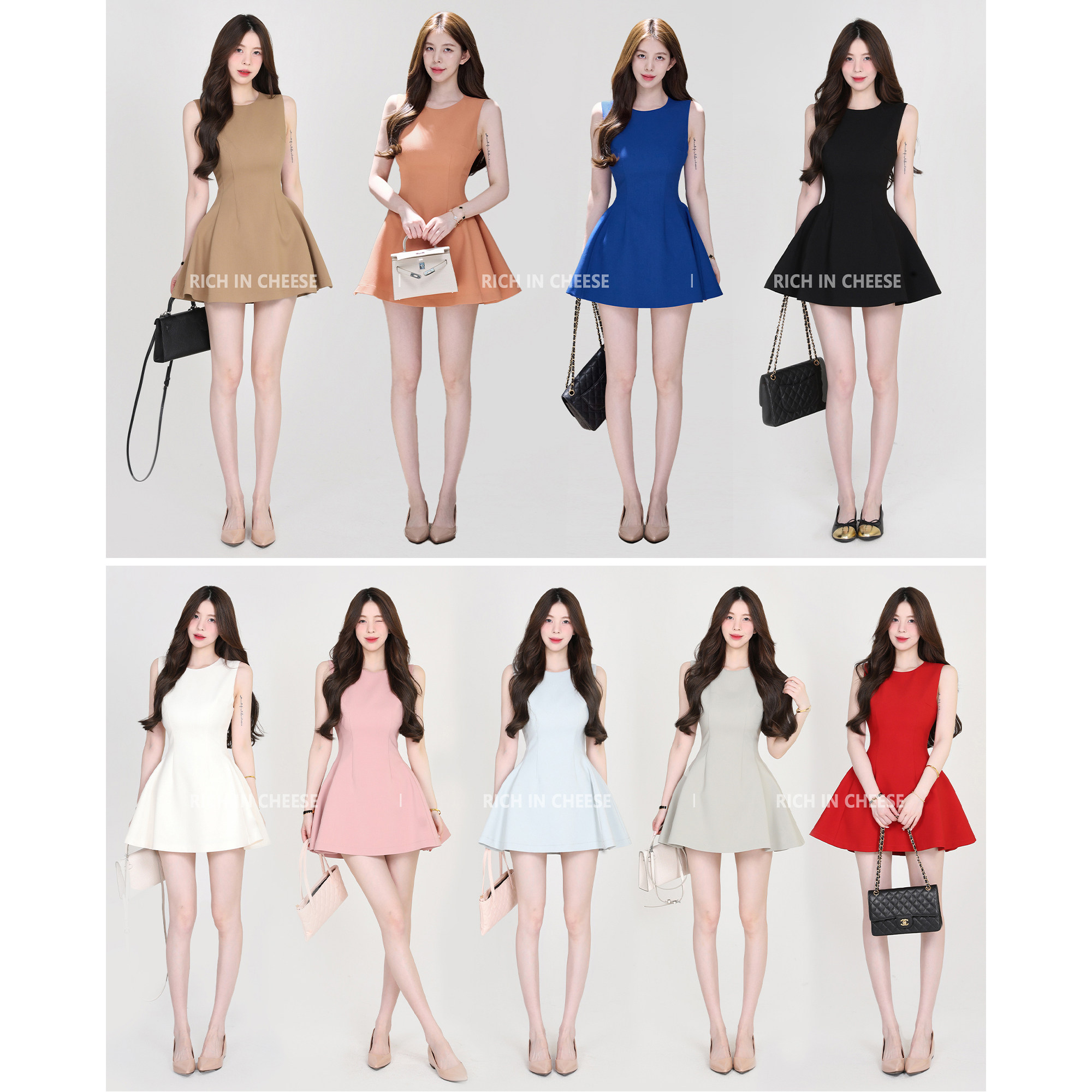 Tongiiuu Wei Mi Monica Retro Resort Texture Suspender Dress Women's Waist Slimming A-Line Short Skirt