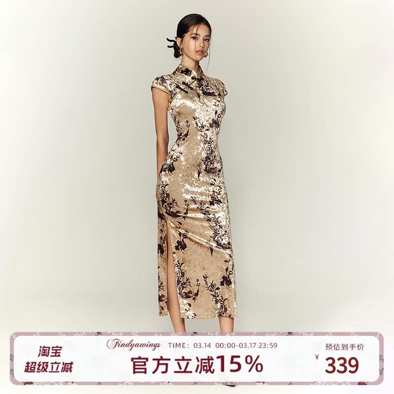 "Gu Ailing Same Style" FIND YA WINS new Chinese velvet swaying elegant cheongsam dress