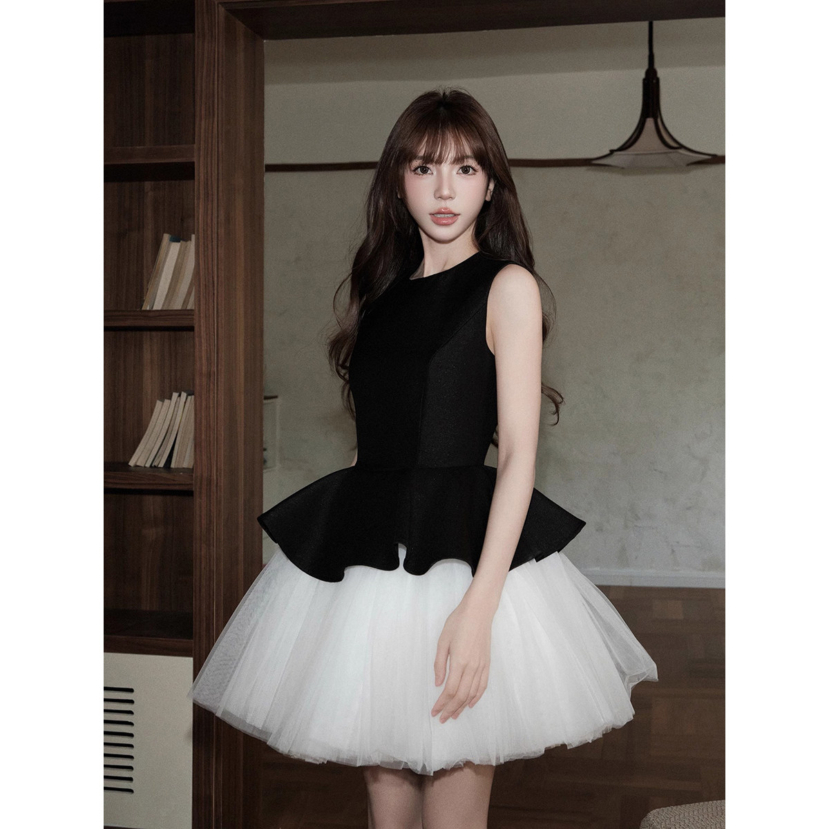 avenement/ballet style patchwork mesh puffy skirt dress, black birthday dress, princess dress, senior woman