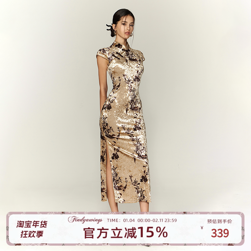 "Gu Ailing Same Style" FIND YA WINS new Chinese velvet swaying elegant cheongsam dress