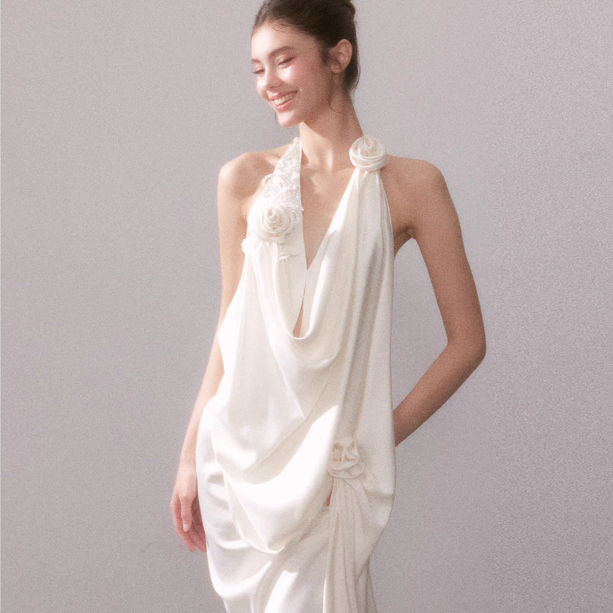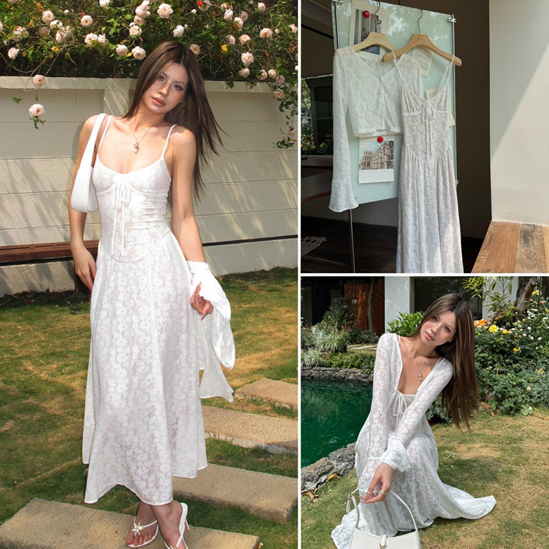 From a white camisole dress women's summer slim satin French high-end temperament certificate dress long skirt