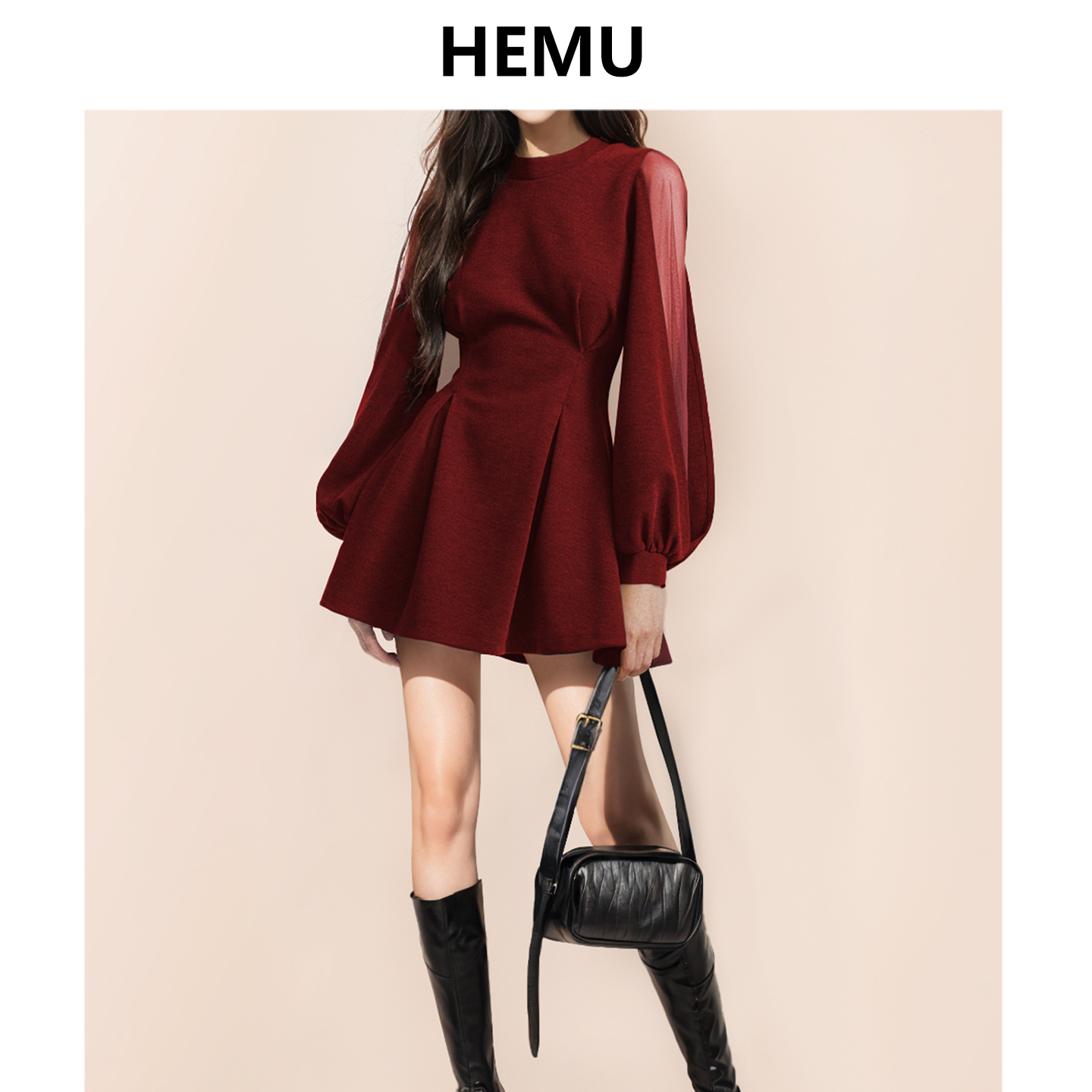 Red dress women's French engagement dress can be worn daily with a high-end daughter sense miu series Christmas outfit autumn and winter