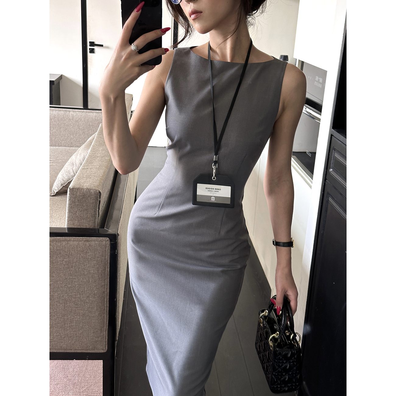 Luo Ge's wool roll summer workplace siren style sleeveless dress female waist Rachel skirt high intelligence outfit