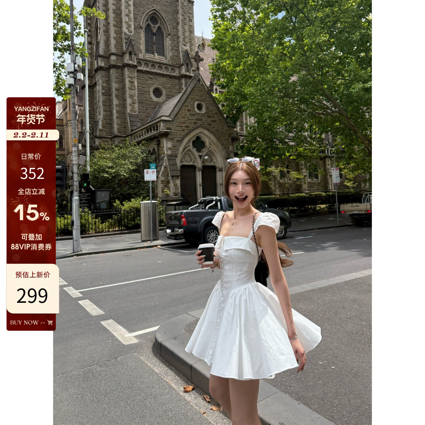 yangzifan white dress sundress women's summer off-the-shoulder French design A-line puffy skirt
