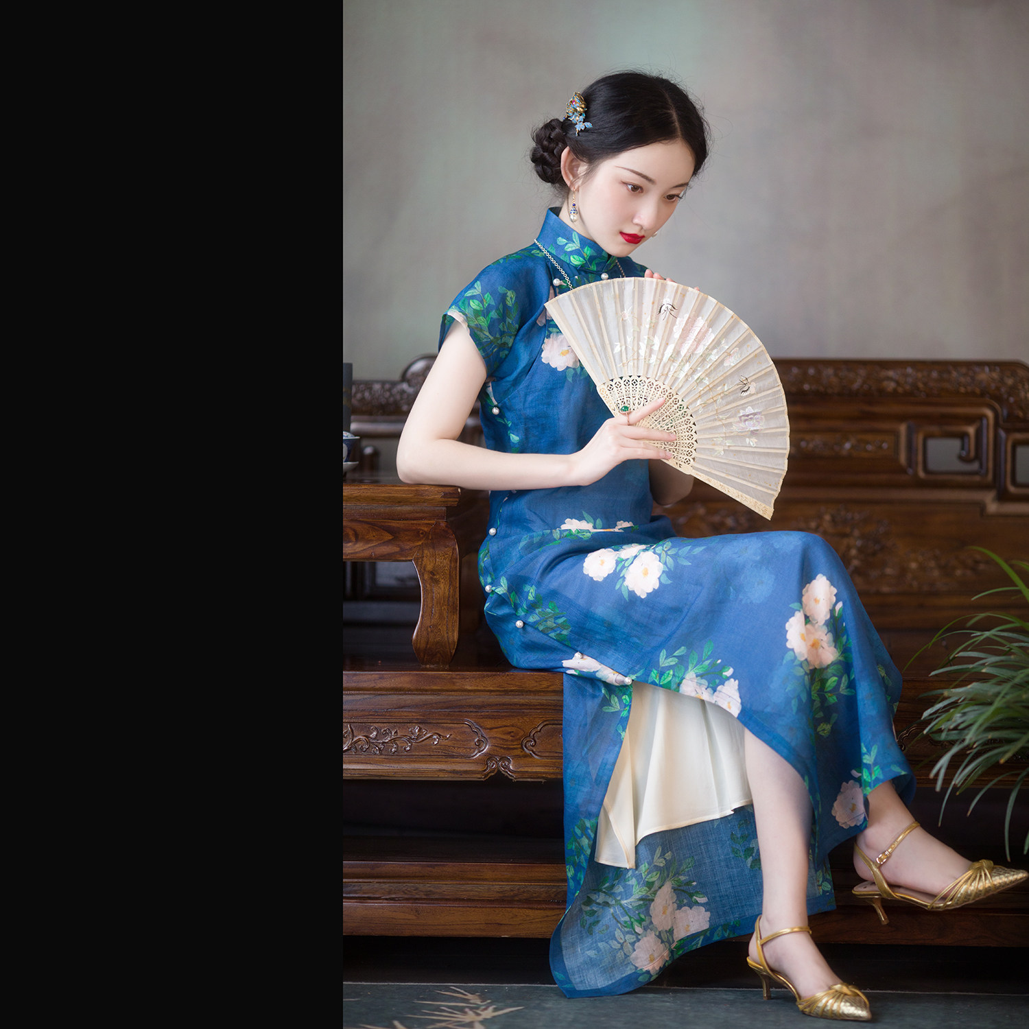 Wei Man Courtyard Fragrance丨A city of wind catkins丨Tencel linen printing, ancient law, Republic of China style, flat cutting, cheongsam female original