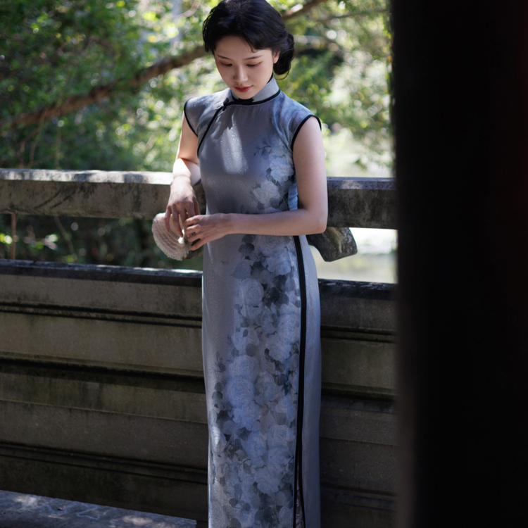 Waterfall Rose | Limited time appreciation, flat cut, no savings, one-piece single-placket, mulberry silk tulle cheongsam, not machine washable