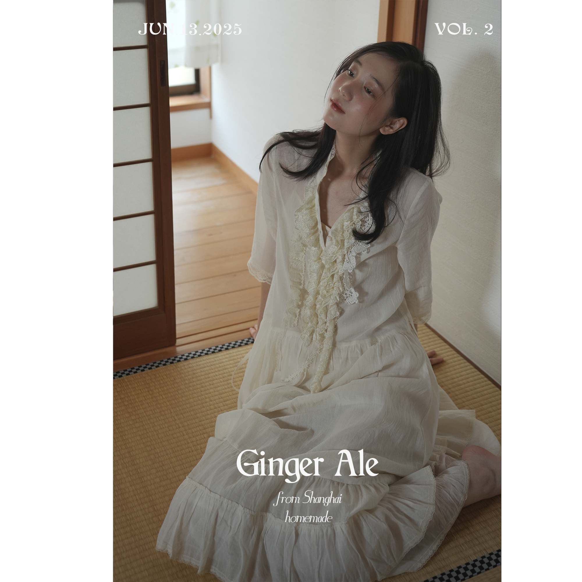 Ginger ale "Bad Romance" vintage lace stack collar white cotton shirt/dress