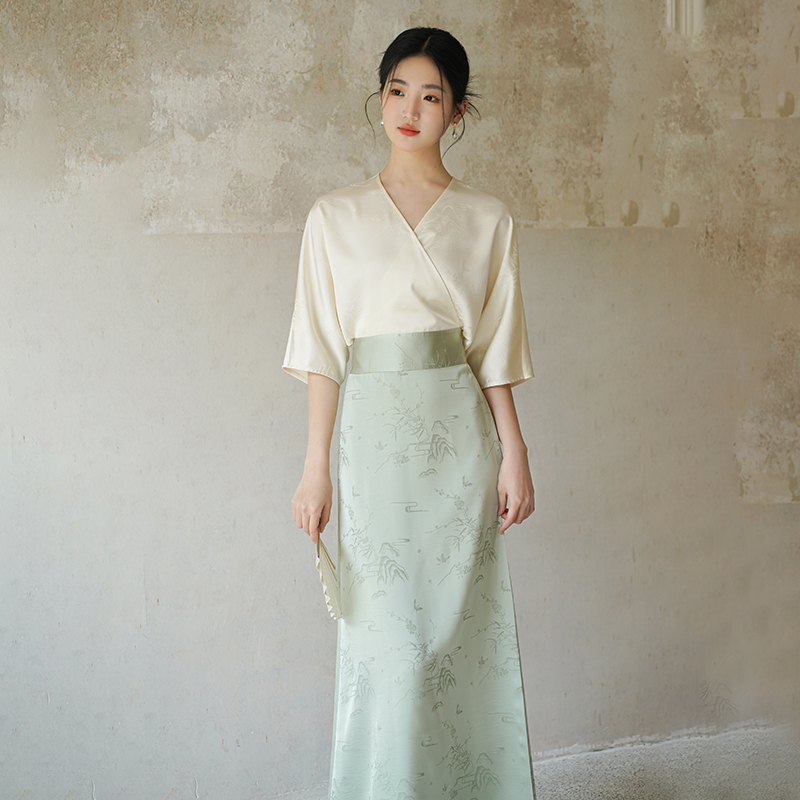 [Qiao Weaving] - diamond pattern embroidered straight skirt - curved collar gauze shirt Han Wei Jin restoration Hanfu original woman
