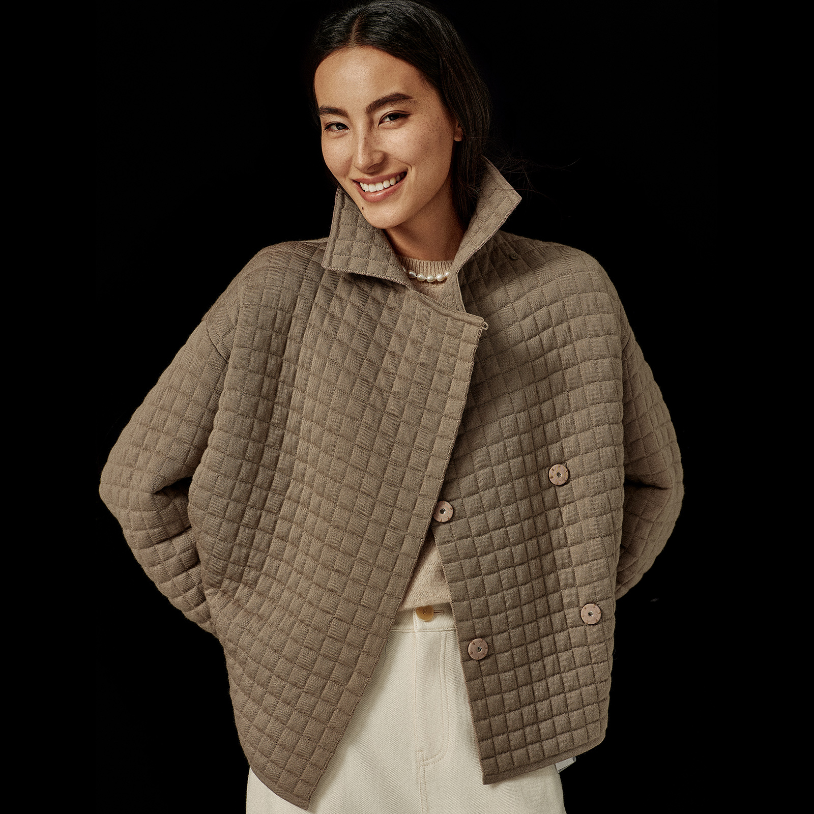 Little bug town store Wang upgrade! Merino wool knocking craft short coat, lapel rhombus knitted coat