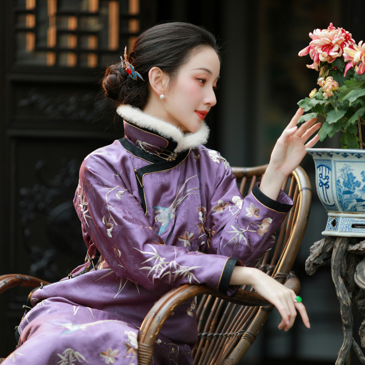 Hanxiang Nugget丨2025 Winter New Model丨Silk Xiangyun Yarn Heavy Industry Embroidery Padded Ingots Collar Narrow-sleeved Cheongsam