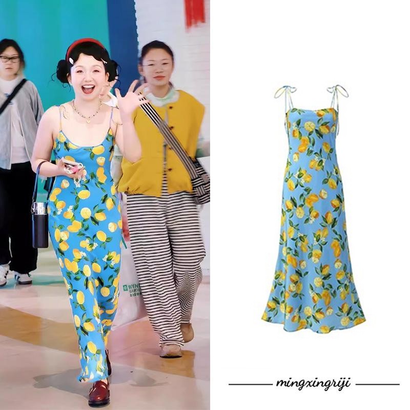 Sister Lang Spicy Yoko Li Jiaqi same French island style vacation dopamine lemon print camisole dress