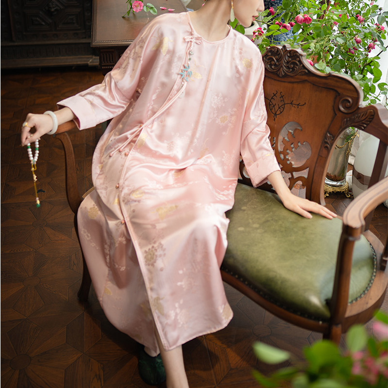 2024 New Arrivals PCY1851 Silk Vintage Robe, Chinese Cheongsam Hand-Buttoned Cropped Sleeve Dress Spring and Summer