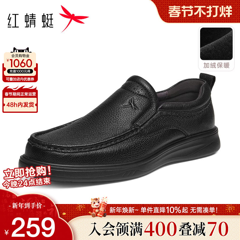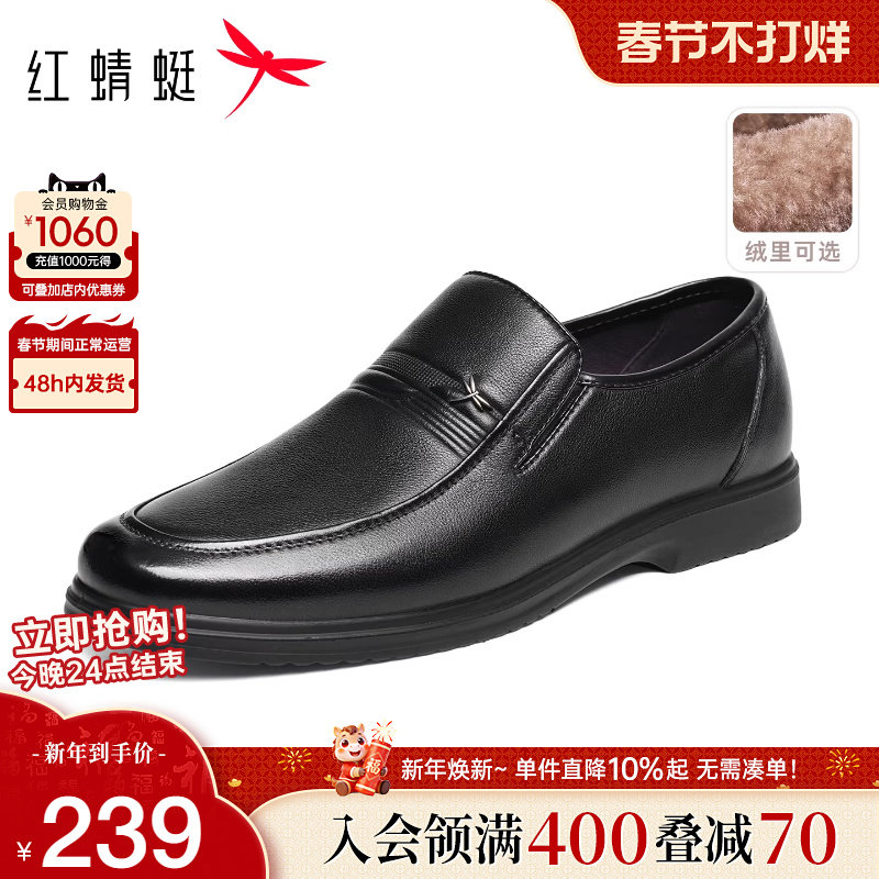 Red dragonfly men's shoes winter new business casual leather shoes men's leather cotton shoes soft soles comfortable middle-aged dad shoes
