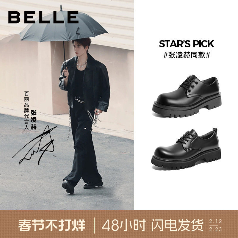 Zhang Linghe's same Belle men's shoes spring and summer new thick-soled heightened leather shoes big-toe casual derby shoes A1434A