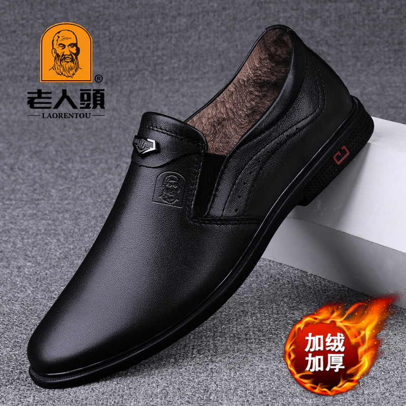 Leather men's leather shoes for the elderly 2025 autumn and winter new fleece warm business formal casual slip-on dad shoes
