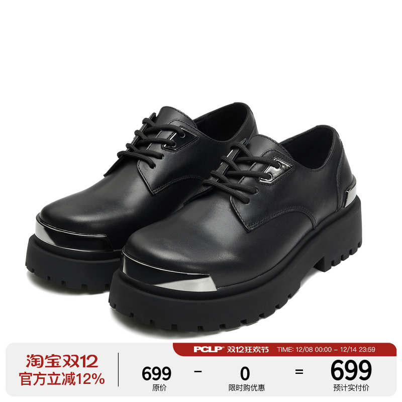 【Tan Jianci Same Style】PCLP Derby Leather Shoes Round-toed Derby Platform Leather Shoes Versatile Commuter Casual Men's Shoes