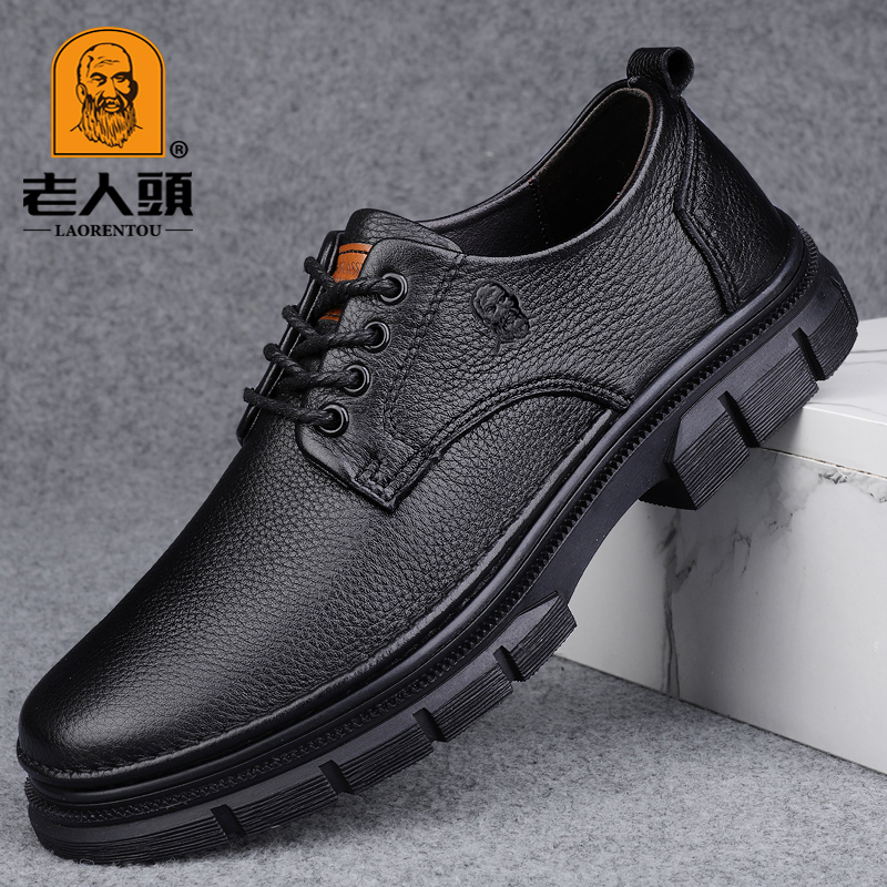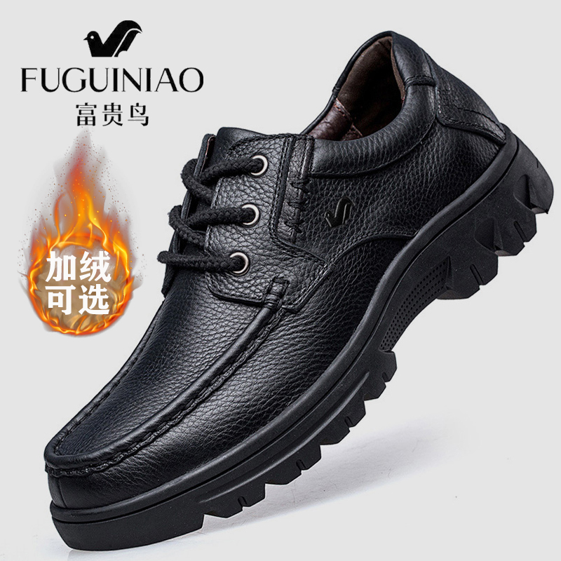 Old man head men's shoes autumn and winter top layer cowhide men's casual leather shoes genuine leather soft surface thick sole non-slip plush men's shoes