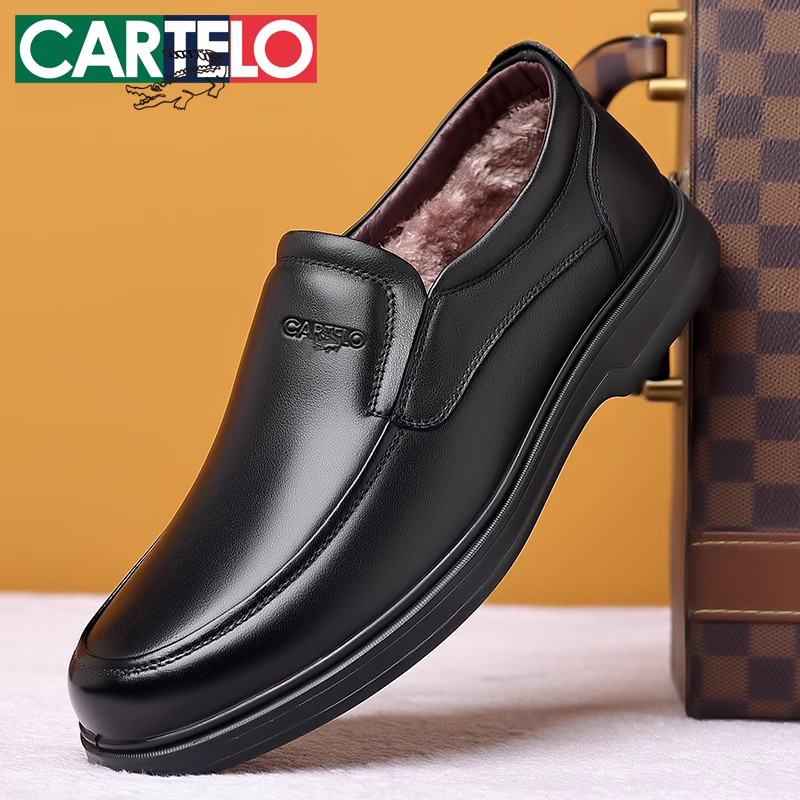 Belle Men's Soft-Sole Business Casual Leather Shoes Autumn and Winter Leather Dad Shoes with Fleece A1010AM3