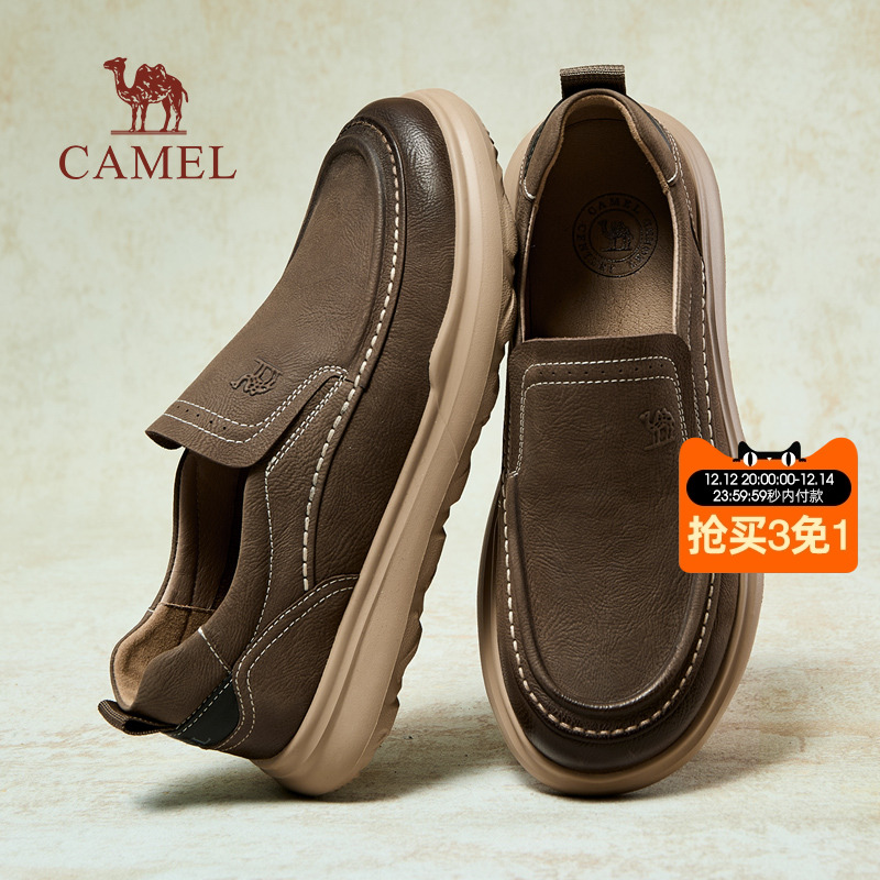 Camel Men's Shoes 2025 Winter Thickened Foot Soft Sole Comfortable Commuting Middle-Aged Dad Business Casual Leather Shoes Men's