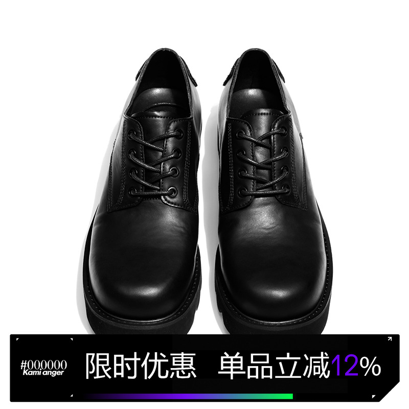 Kami anger original design dark round toe derby shoes heightening casual leather shoes men's new platform shoes