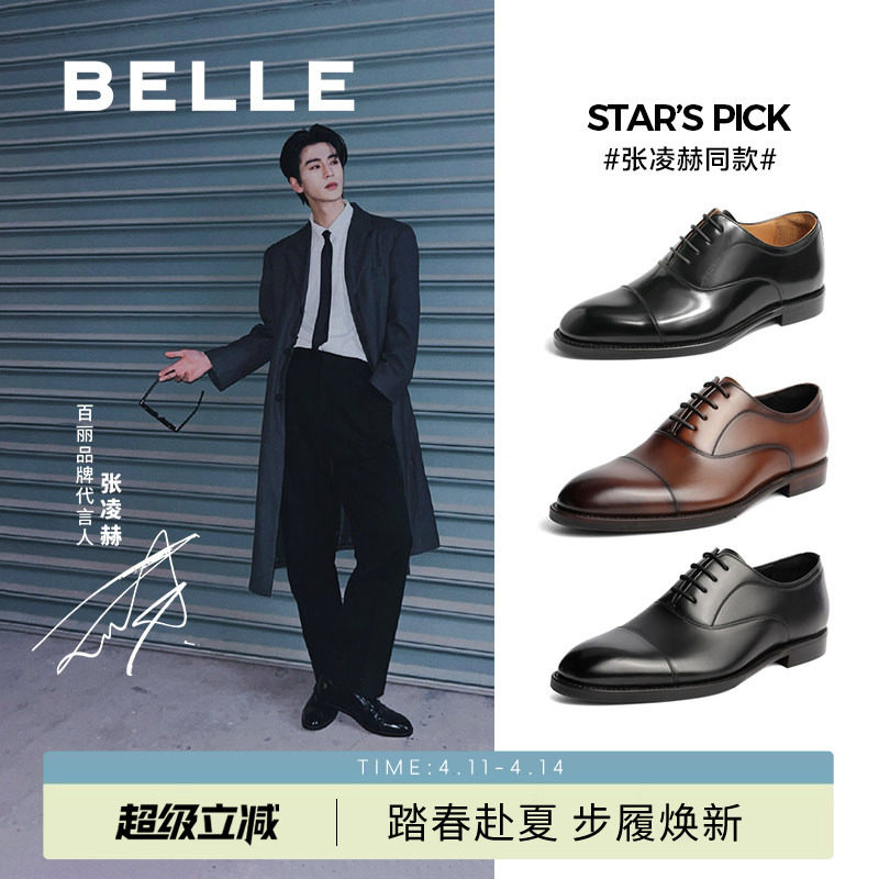 Zhang Linghe same Belle shoes men's business formal Oxford leather shoes men's inner height increase three-joint wedding shoes 59736