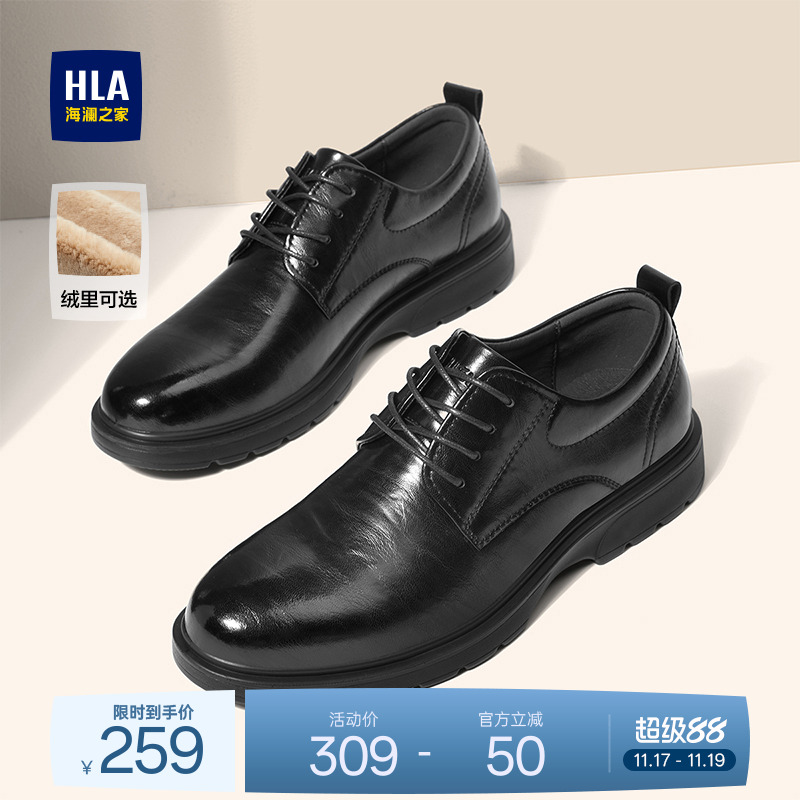 HLA/Heilan House wedding groom shoes increase height, new men's shoes, business autumn and winter derby shoes, formal leather shoes, plush plush