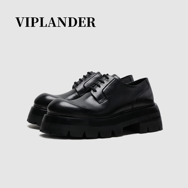 [Wu Lei's same style] viplander's new round toe thick sole heightened scalp shoes men's derby shoes 142701