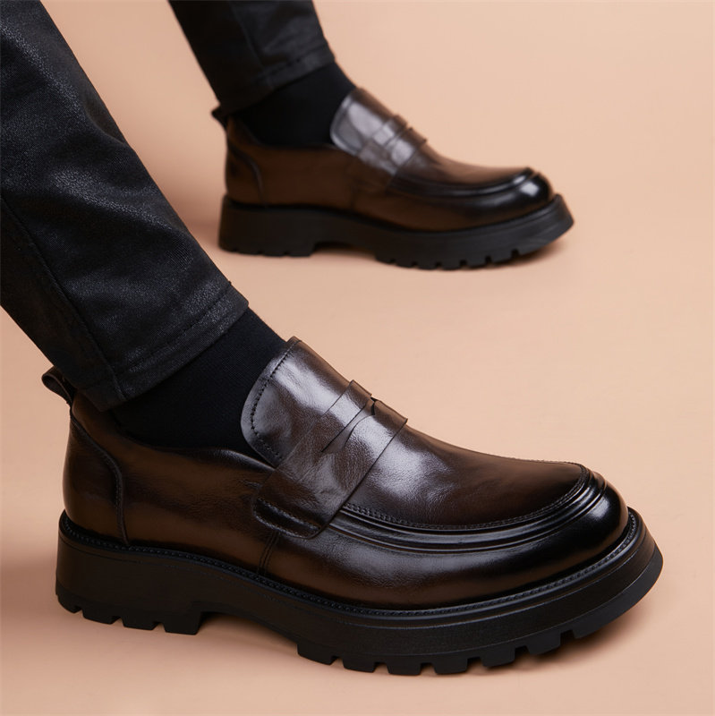 Trendy brand high-end top-layer cowhide men's shoes, British light luxury thick-soled business formal business big scalp shoes, one kick of bean shoes