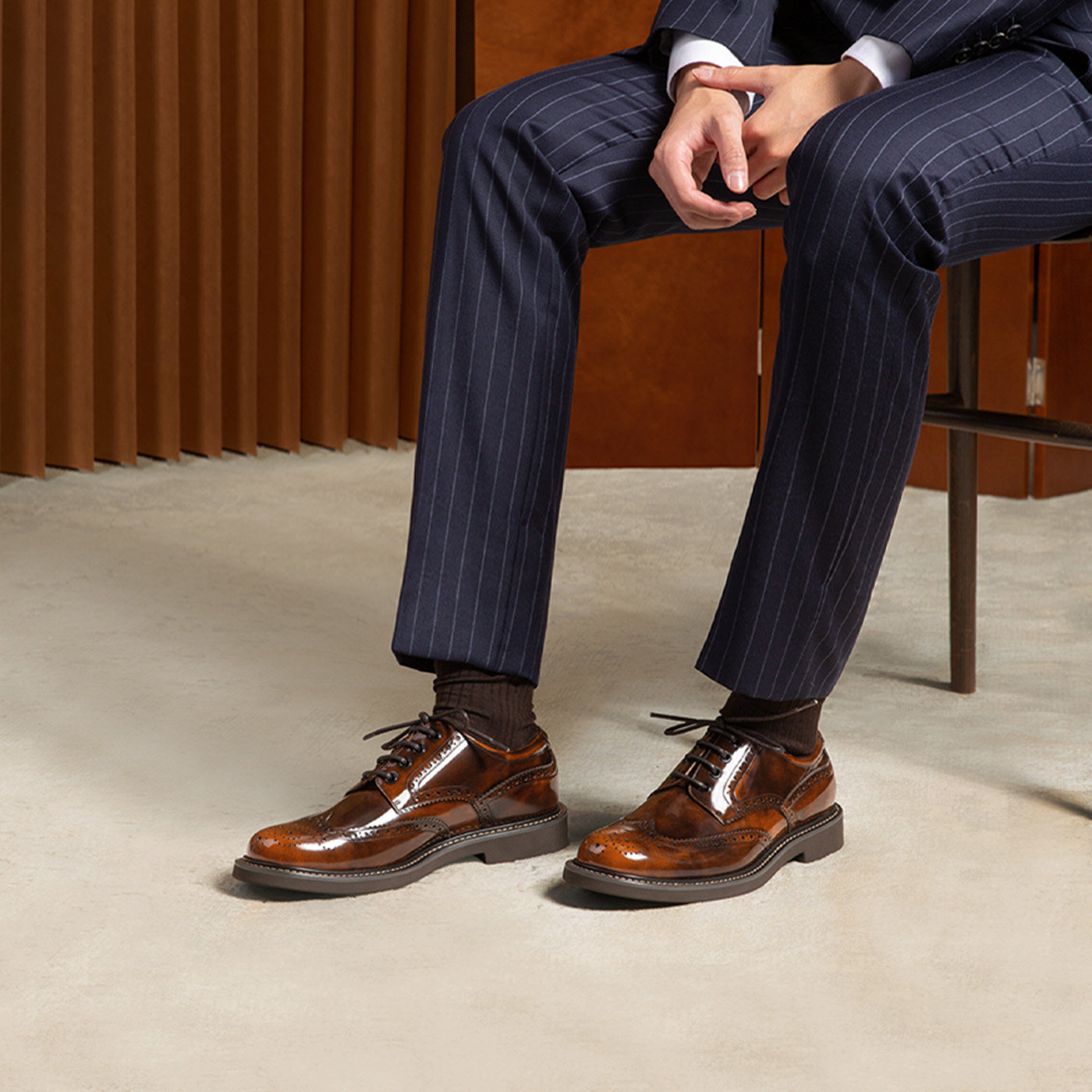 ThomWills Brogue Derby Shoes Genuine Leather Business Casual Heightened Platform Leather Shoes Carved Breathable Soft Sole Men