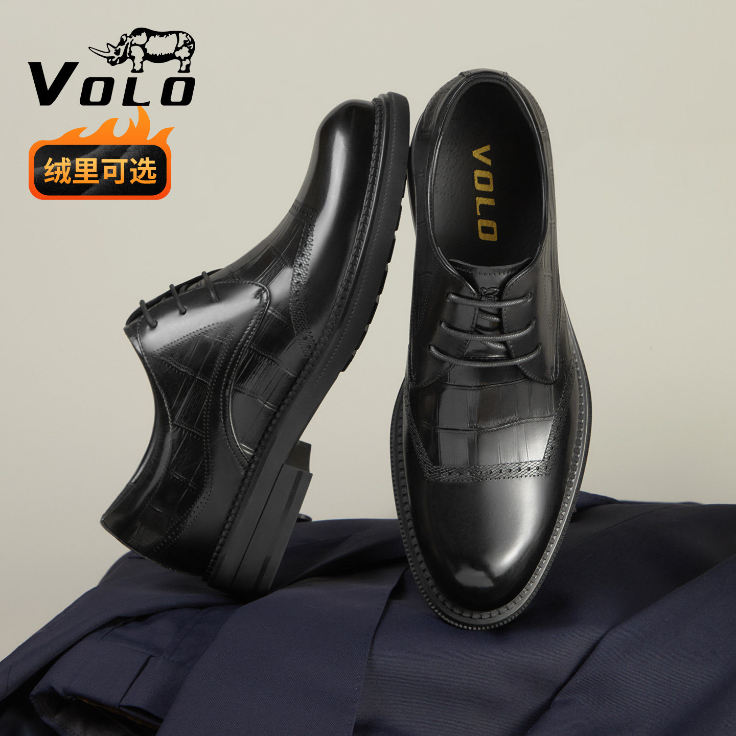 VOLO/rhino leather shoes men's wedding men's formal leather shoes leather inner heightened men's business derby shoes soft sole