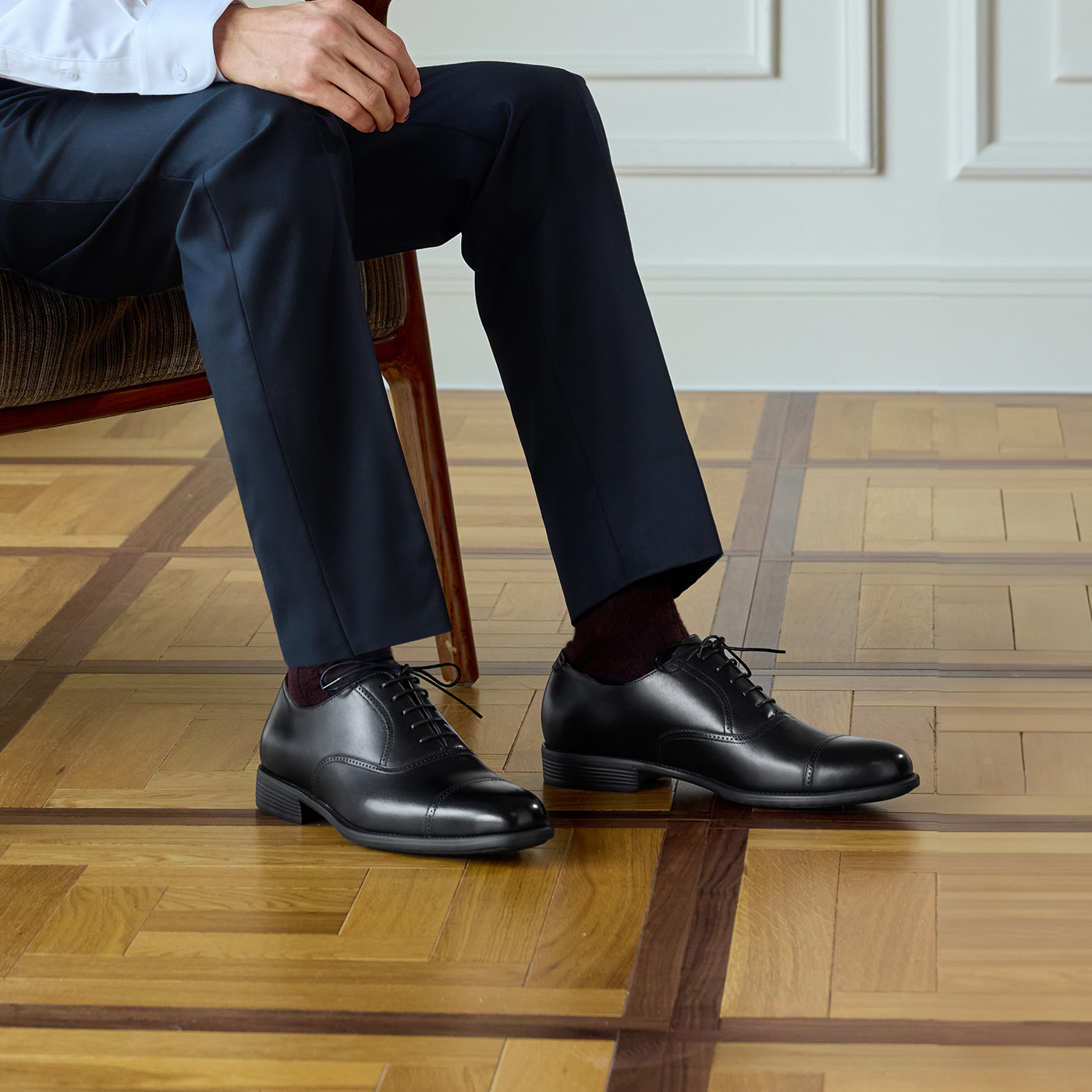 【Calf leather】chioryn green derby shoes for men business interview groom to increase height thick-soled commuter leather shoes