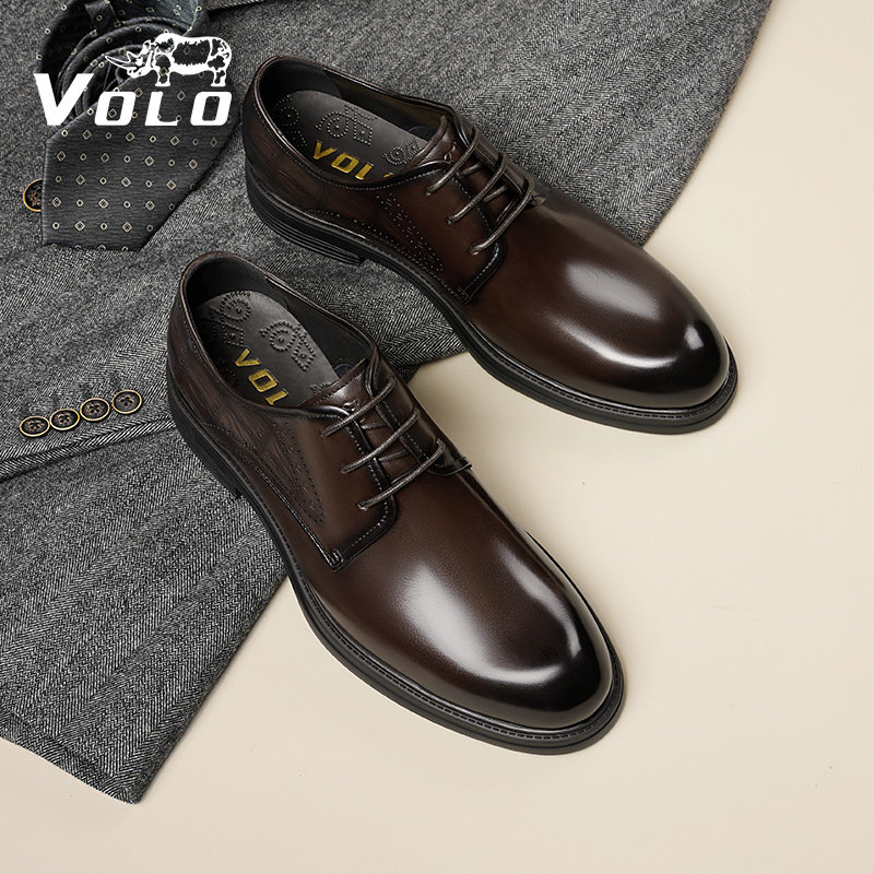 VOLO/Rhino Men's Leather ShoesMen's Formal Business Luxury Men's Shoes Genuine Leather Shoes Men's Wedding Pointed Toe Derby Shoes