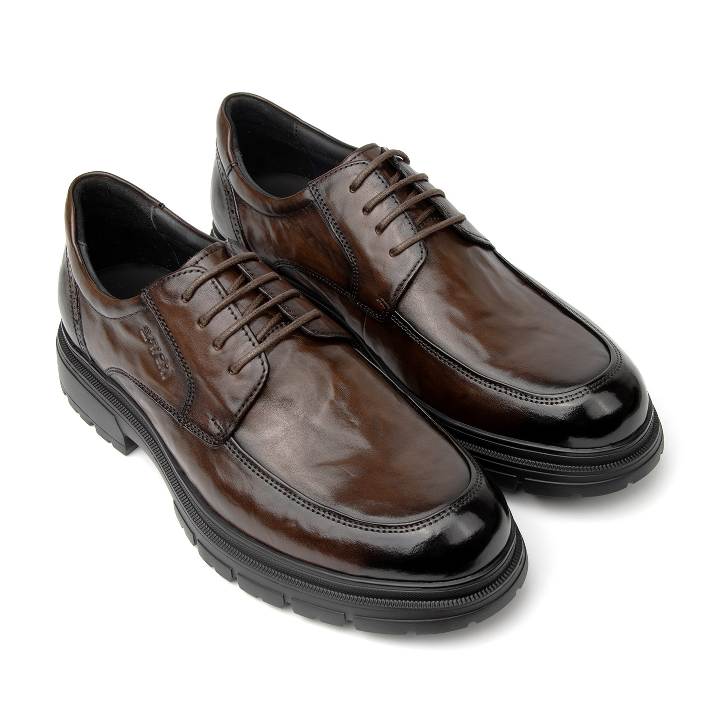 Shachi men's shoes new men's leather shoes brown leather business formal wear round toe thick sole heightened derby shoes for men