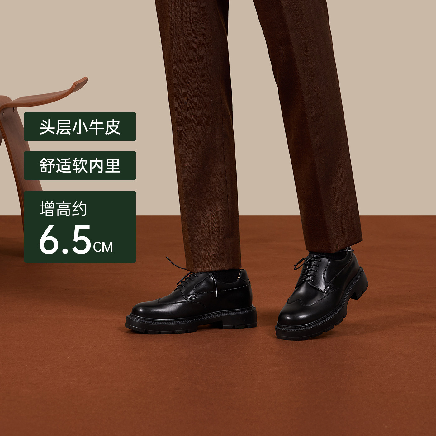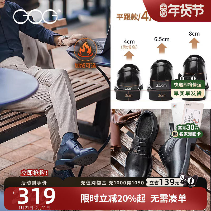 【Wu Lei's same style, height increase of about 6.5cm】ZUTI formal leather shoes, men's round toe thick-soled derby shoes, casual autumn and winter