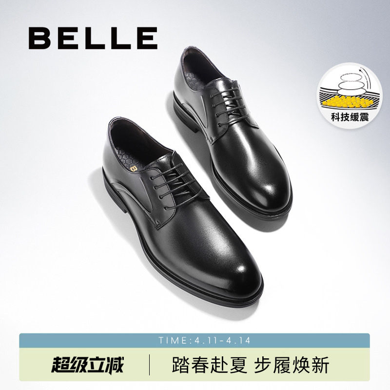 Belle Men's Casual Business Formal Leather Shoes Men's 26 Spring New Gift Box Cowhide Groom Wedding Shoes A2266AM6