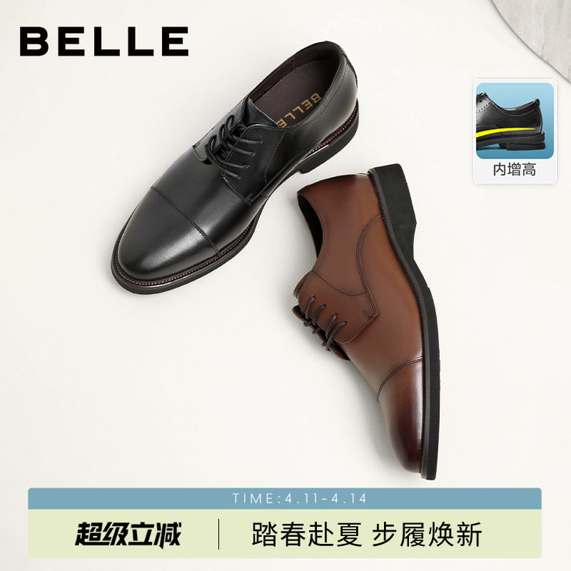 Belle Men's Spring and Summer Breathable Casual Business Formal Leather Shoes Three-joint Thick Sole Heightened Wedding Shoes B3229A