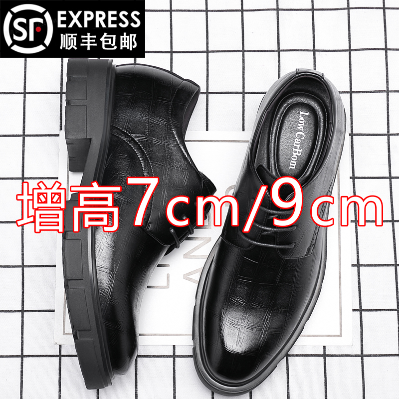 Leather shoes men's leather black business formal autumn breathable British casual inner height increase wedding groom suit shoes