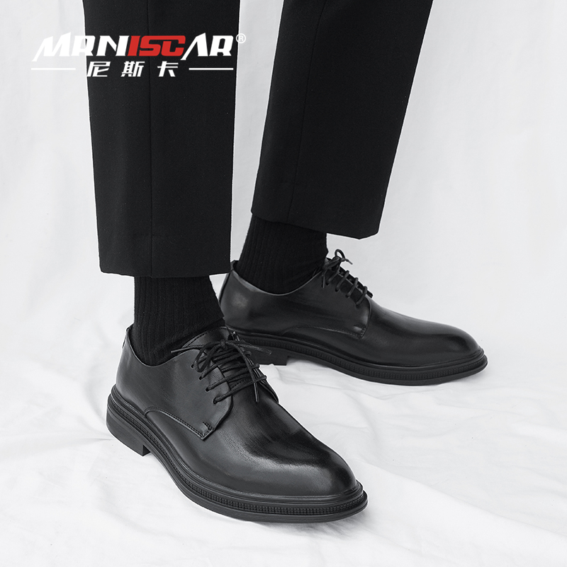 Derby shoes, men's black square scalp shoes, business formal business shoes, British style casual cleanfit shoes