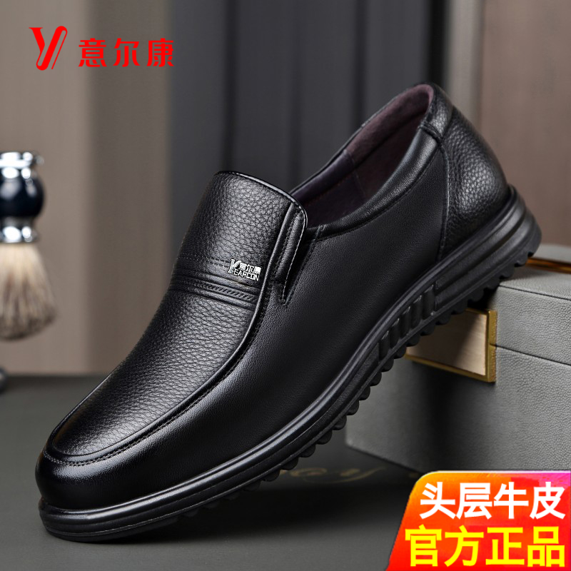 Genuine Yierkang men's shoes spring and autumn new men's plus suede shoes genuine cowhide breathable soft sole middle-aged and elderly dad shoes