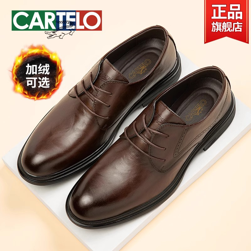 Official Men's Leather Shoes Genuine Leather Business Formal Wear Plush Cotton Brown Casual Soft Sole Pointed Toe Young Wedding Groom Shoes