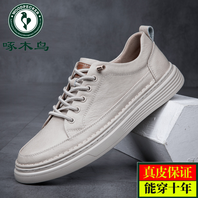 Woodpecker Men's Shoes 2025 Spring New Casual White Shoes Men's Board Shoes Leather Soft Sole Breathable Shoes Men's Models