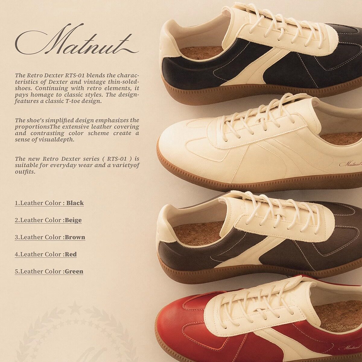 MATNUT [RTS-01] Vintage German training cowhide casual and comfortable for daily commuting Thin-soled German training shoes for men and women