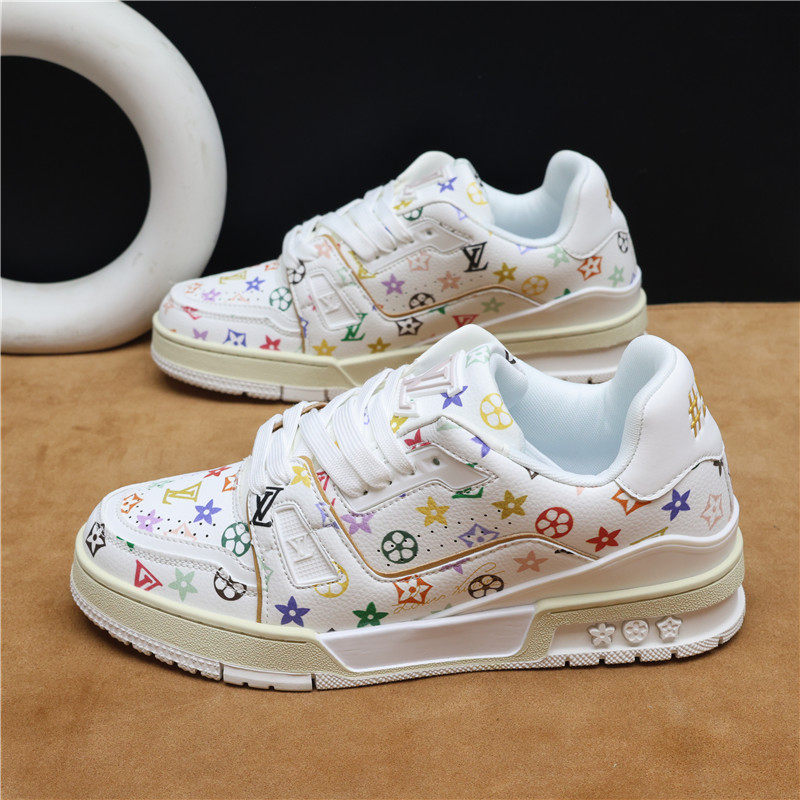 European station 2025 autumn new niche original white three-color printed white shoes women's ins style versatile sneakers for men