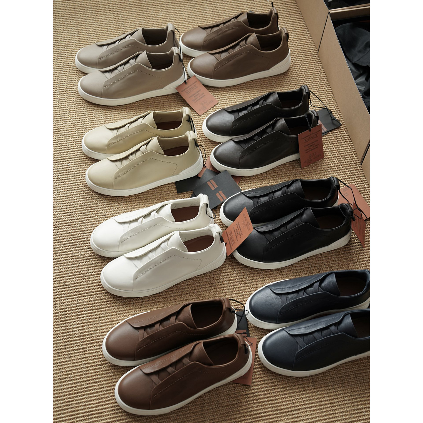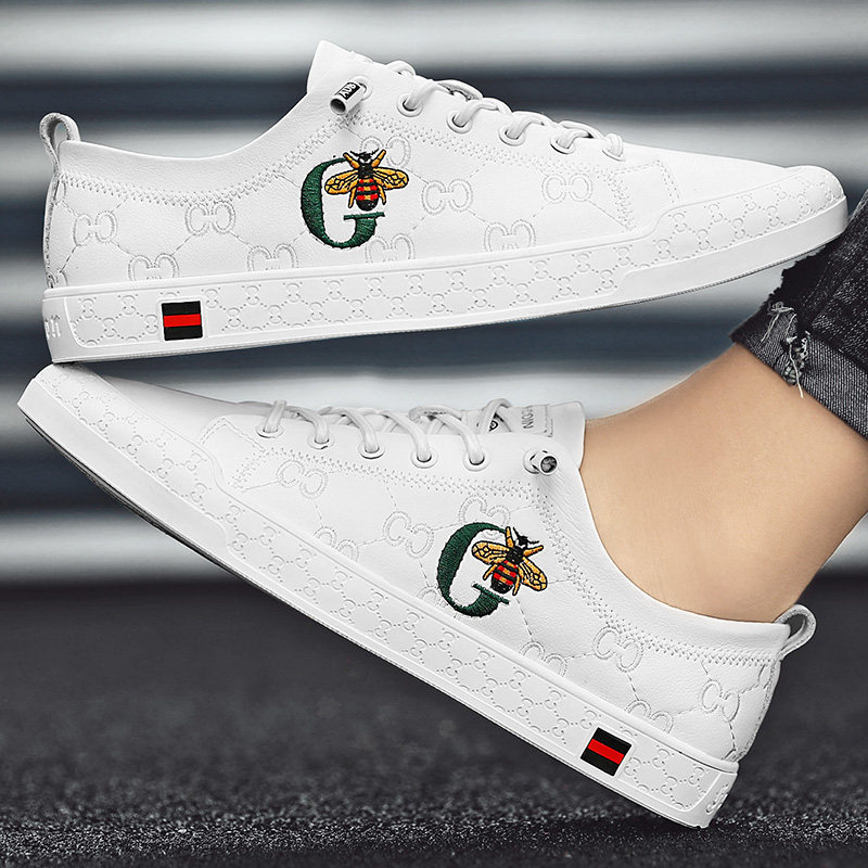 Trendy men's shoes 2026 new leather business casual board shoes men's white shoes with a soft sole and bee trendy shoes