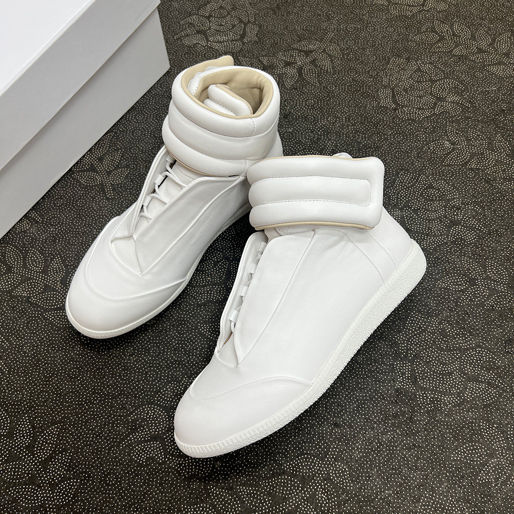 [Lao Wang of Playing with Shoes] Velcro high-top board shoes, men's leather casual shoes, thick-soled couples, white shoes, skateboarding shoes