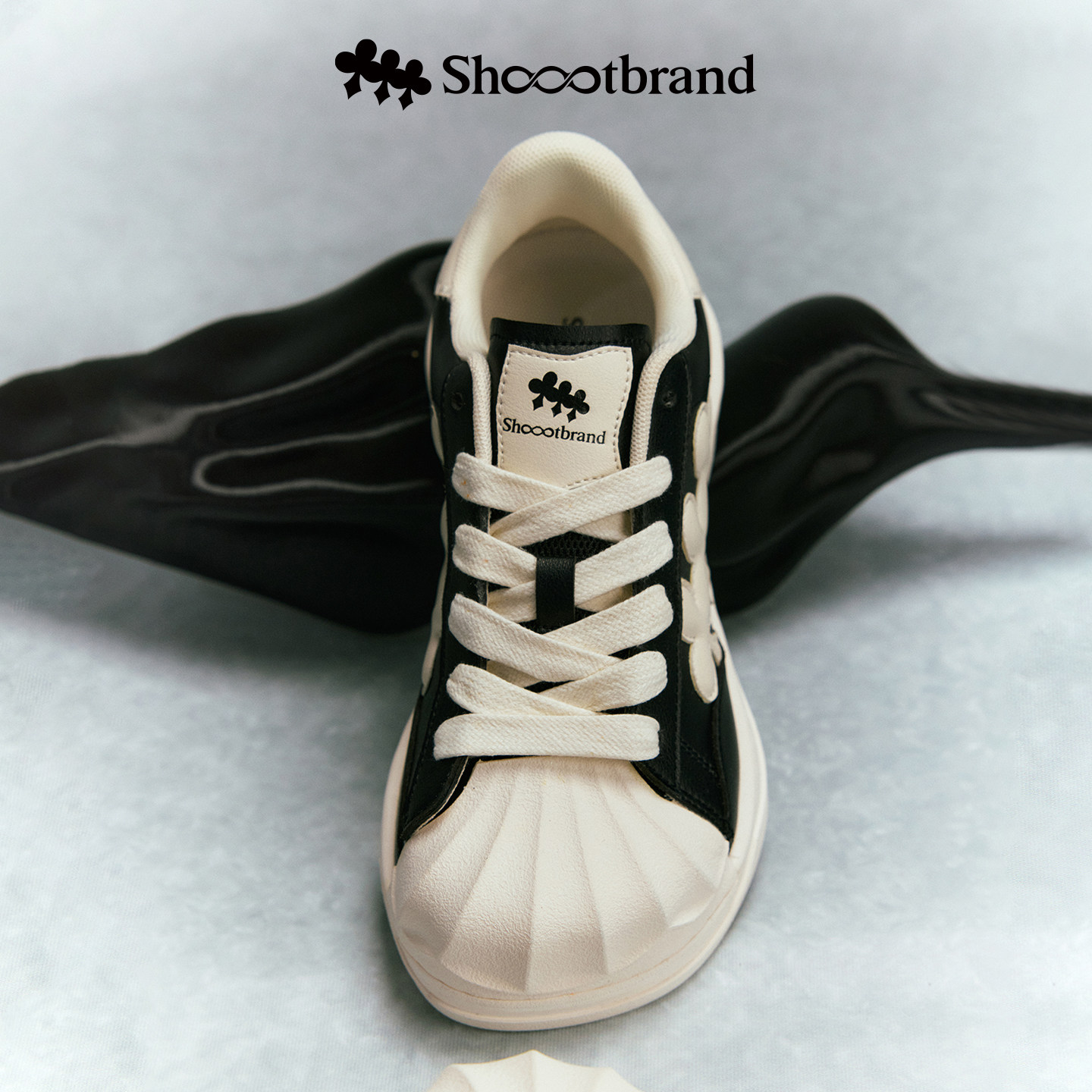SHOOT BRAND Weng Jie co-branded model Mutation black and white broken shoes splicing to increase the height of retro shell toe shoes for men and women