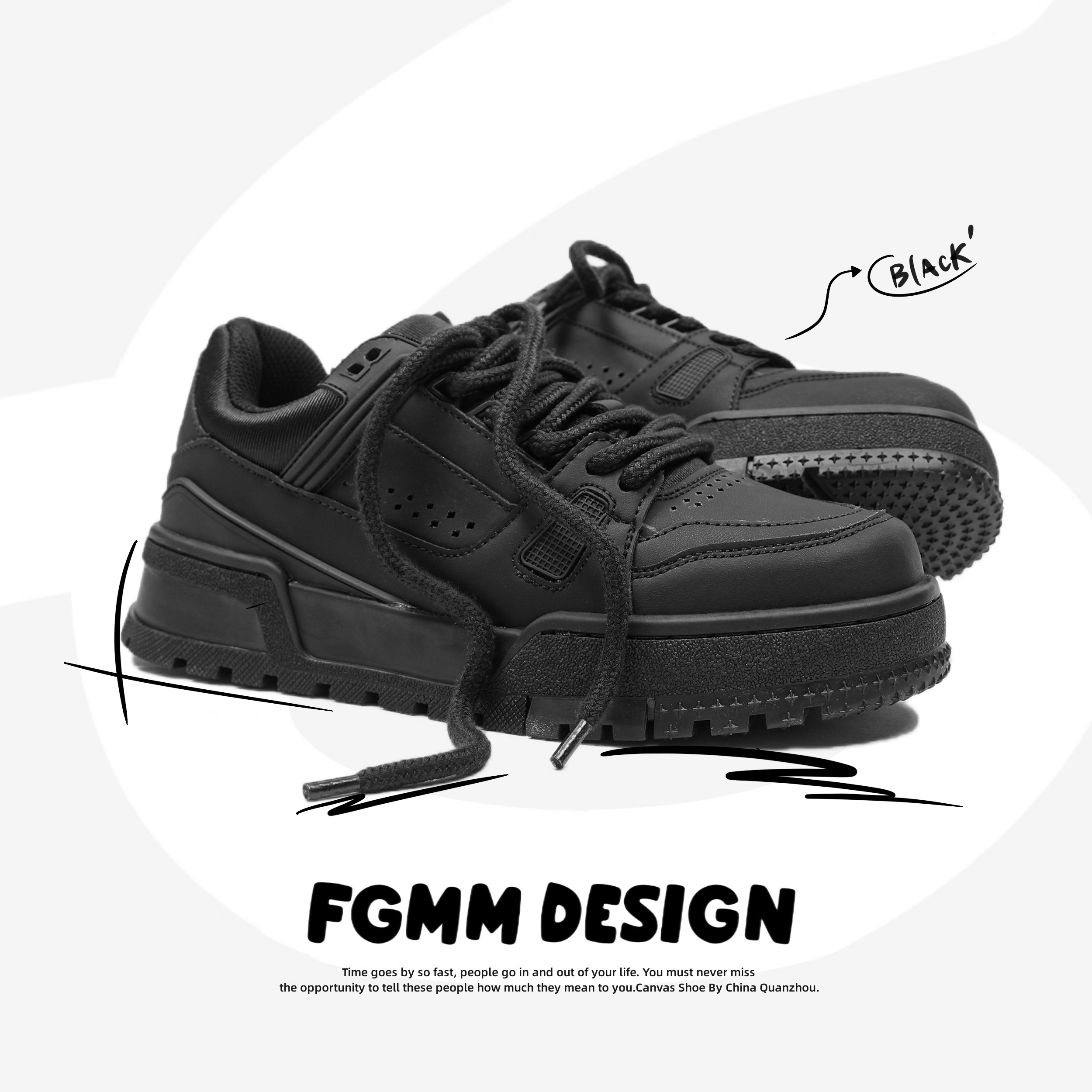 FGMM small black shoes thick sole heightened casual board shoes men's and women's niche original high street men's shoes winter bread shoes