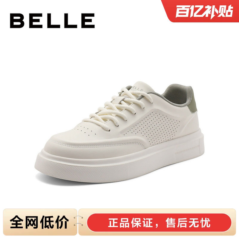 Belle men's shoes plaid cowhide white shoes men's 26 new spring shopping mall casual board shoes 9AH01AM6