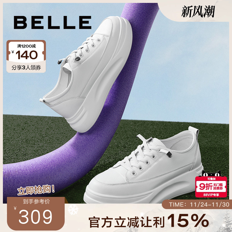 Belle women's shoes, thick-soled white shoes, spring soft soles, simple and lightweight, age-reducing casual board shoes, U8N1DAM3