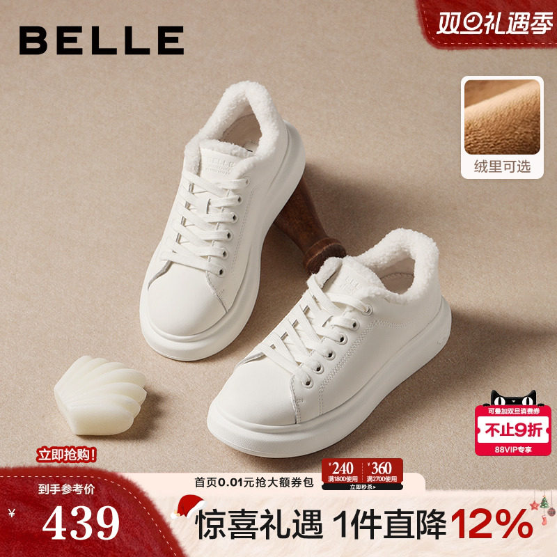Belle women's shoes, thick-soled white shoes, plus velvet winter, new height-boosting shoes, cotton shoes, athleisure board shoes, D5Q1DAM5